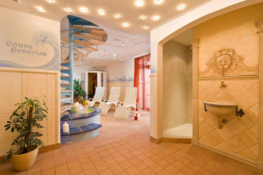 Natürlich steht Ihnen auch unser Wellnessbereich im Hauptgebäude mit Sauna, Dampfbad, InfrarotKabine, Massageduschen, Solarium und Ruheraum zur Verfügung.