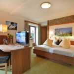 Unsere neuen Junior-Suiten (38m² oder 48m²) sind mit Dusche, separatem WC, geräumigem Sitzbereich, Schreibtisch, Digitalem Kabel-TV mit 26“ Flachbildfernseher, Telefon, Minibar, Bademantel