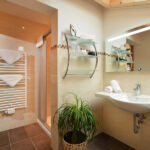 Haarfön, Kühlschrank, Kosmetikartikel, Kosmetikspiegel, teilweise WC separat, Bademantel während